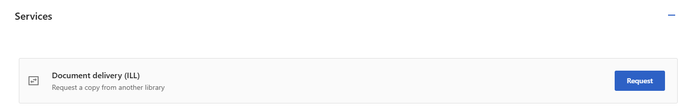 When you click on the UGent-button, you will be redirected directly to the full text or to the catalogue. If UGent does not have access to the article, you will see the ILL request button appear in the catalogue under “Services”:
